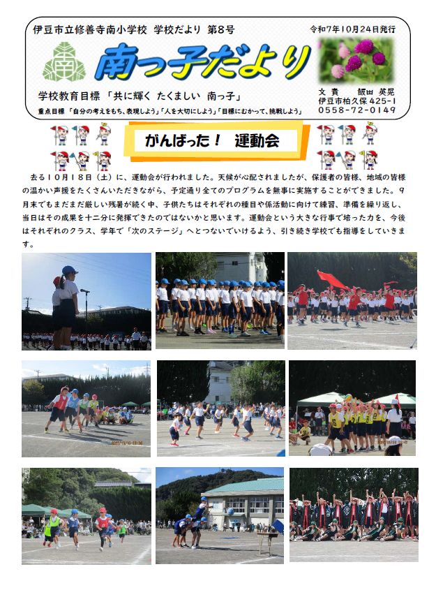 去る10月18日(土)に、運動会が行われました。天候が心配されましたが、保護者の皆様、地域の皆様の温かい声援をたくさんいただきながら、予定通り全てのプログラムを無事に実施することができました。9月末でもまだまだ厳しい残暑が続く中、子供たちはそれぞれの種目や係活動に向けて練習、準備を繰り返し、当日はその成果を十二分に発揮できたのではないかと思います。運動会という大きな行事で培った力を、今後はそれぞれのクラス、学年で「次のステージ」へとつないでいけるよう、引き続き学校でも指導をしていきます。